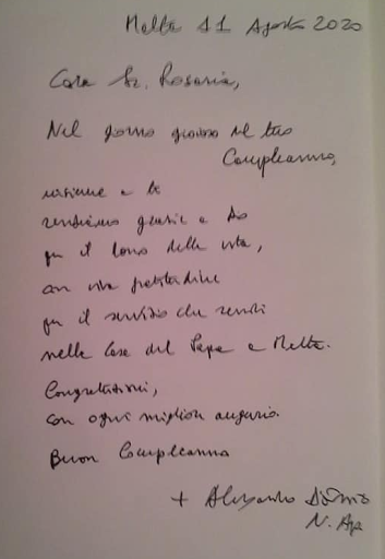 Oggi congratuliamo il Nunzio Appostolico S.E R. Mons. Alessandro D'Errico nel giorno del suo compleanno. A Voi Eccellenza Reverendissima esprimiamo i nostri più sentiti auguri
